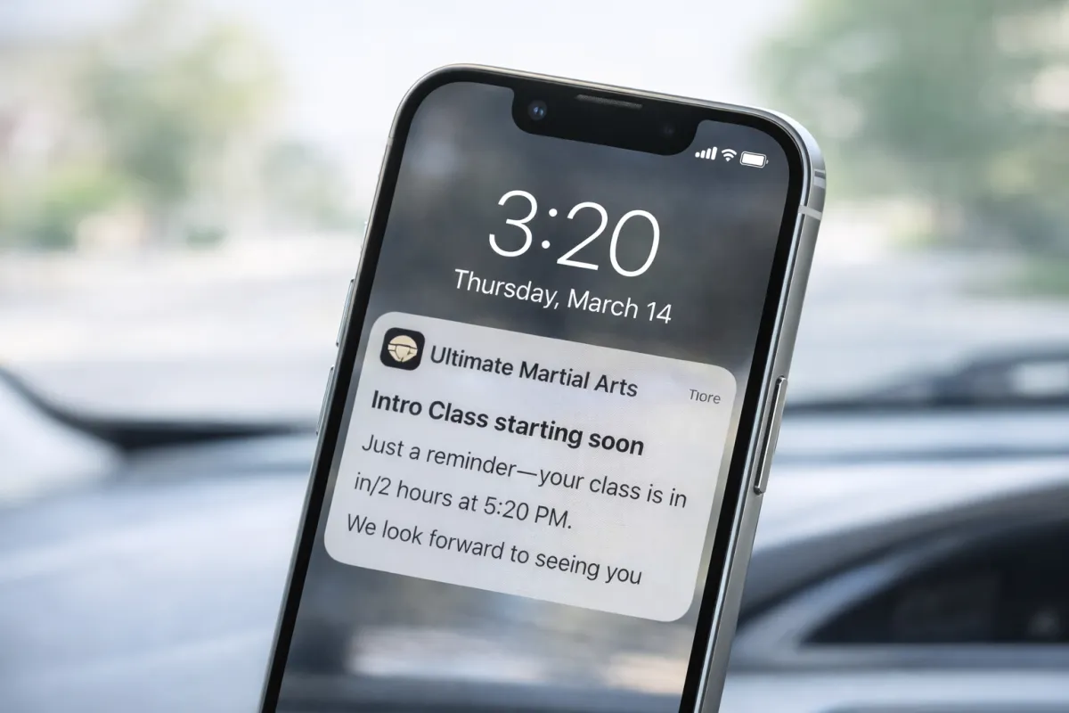 Smart reminders at 24 hours and 3 hours keep families on track.